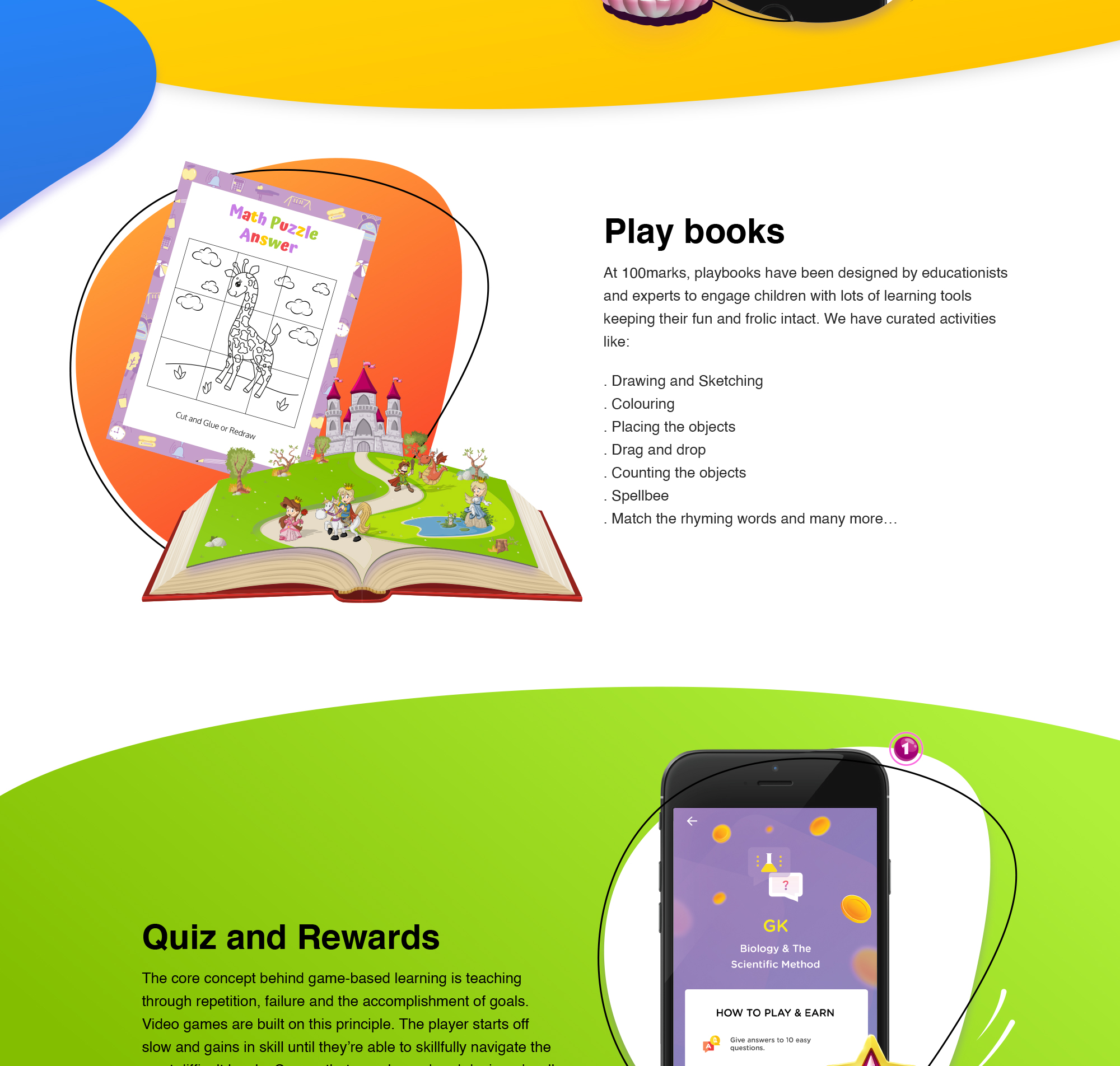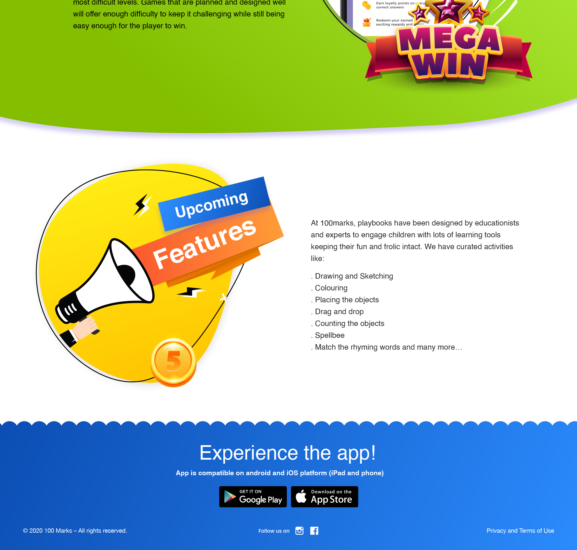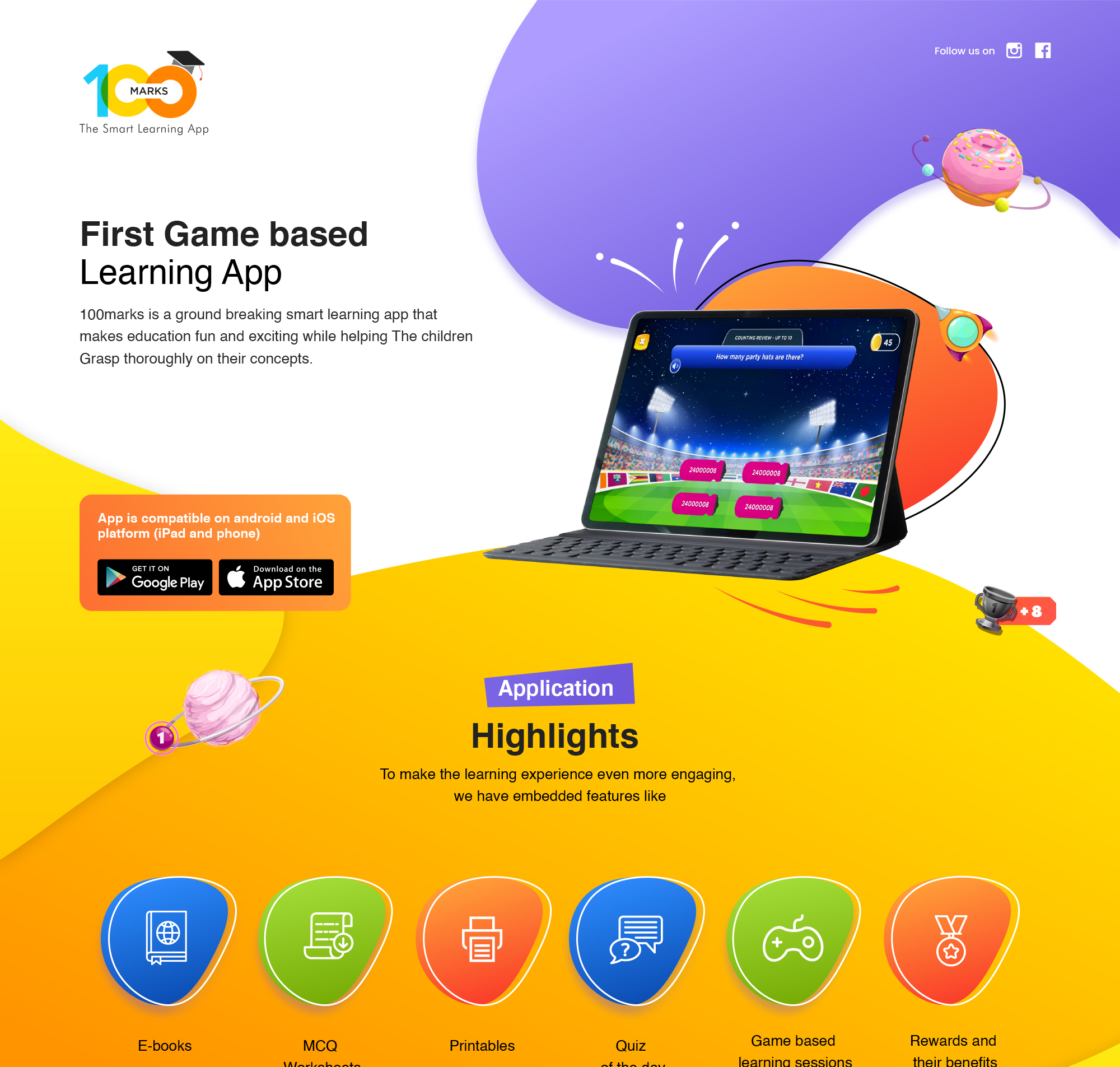 100 marks is a digital learning platform of junior kids where we need lots of game based activity through which they can learn while playing and they can learn from the comfort of their home parents can also check the progress of their kids.