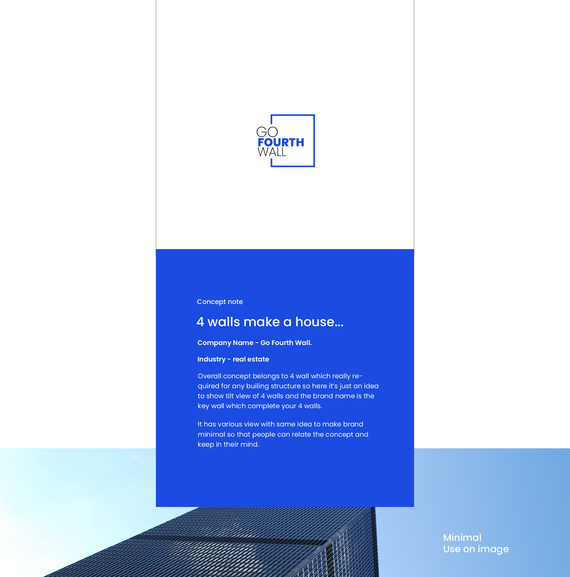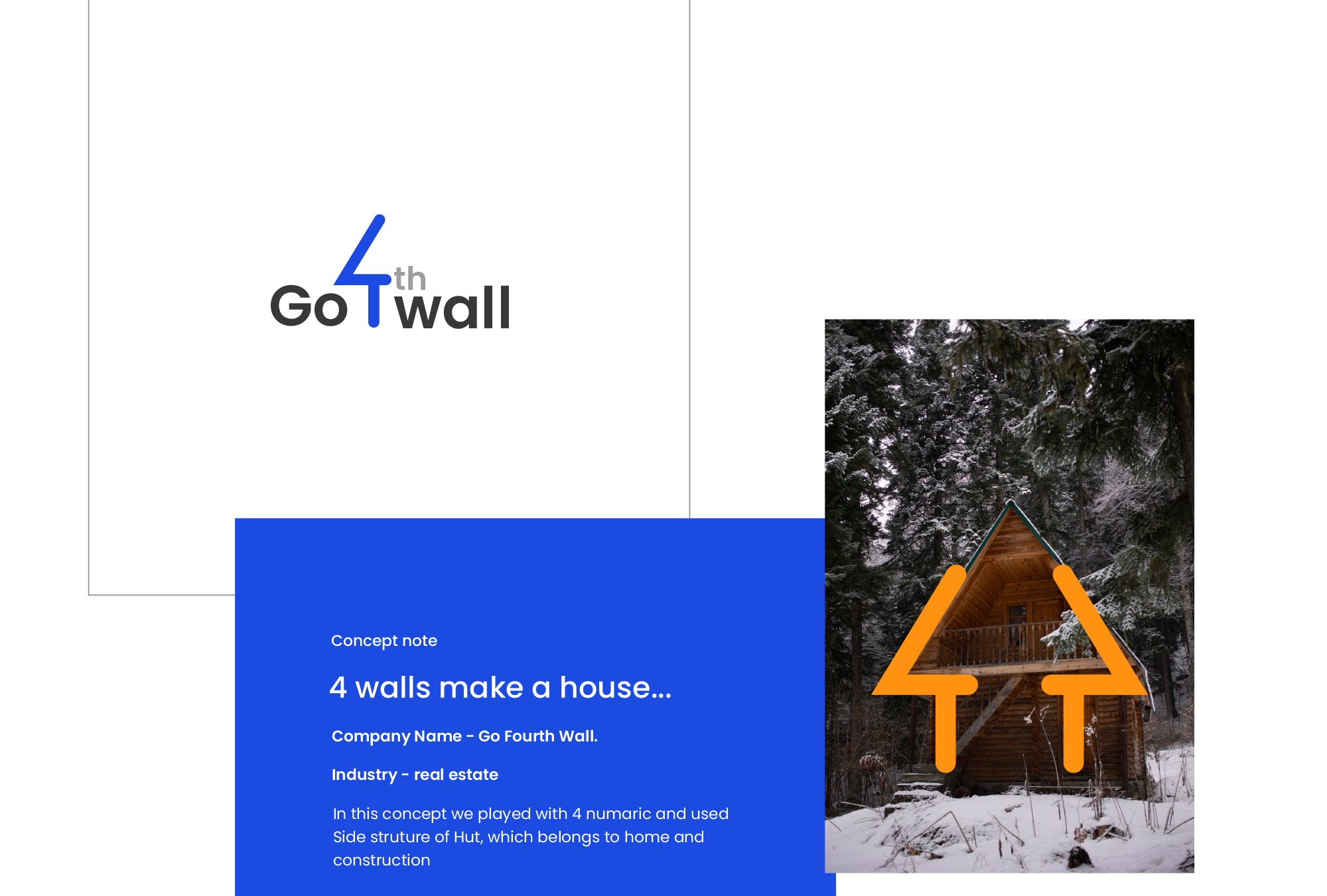 The concpet behind Go4thwall is the play around its brand name letters as well as attempt to showcase its industry which is real estate. we tried to use 4 as a home roof shelter.